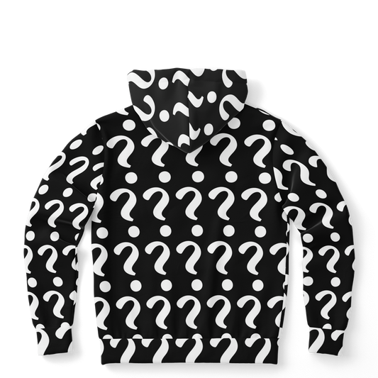 •  Flatlay front view of Custom Print Hoodie with question mark placeholders for personalized design