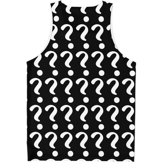 • Flatlay front view of Custom Print Tank Top with placeholder question mark print for personalized design