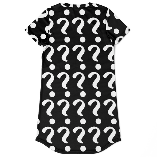 •  Flatlay front view of Custom Print T-Shirt Dress with question mark placeholders for personalized design