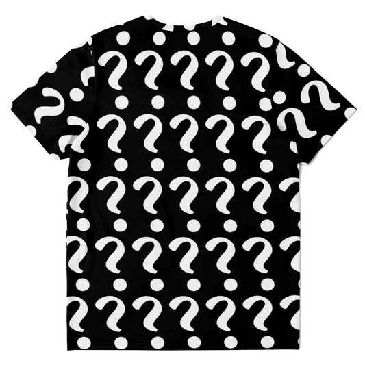 • Flatlay front view of Custom Vision Unisex T-Shirt with placeholder question mark design for custom artwork